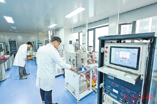 闽都创新实验室多功能薄膜实验室内,科研人员正在做实验。记者 石美祥摄