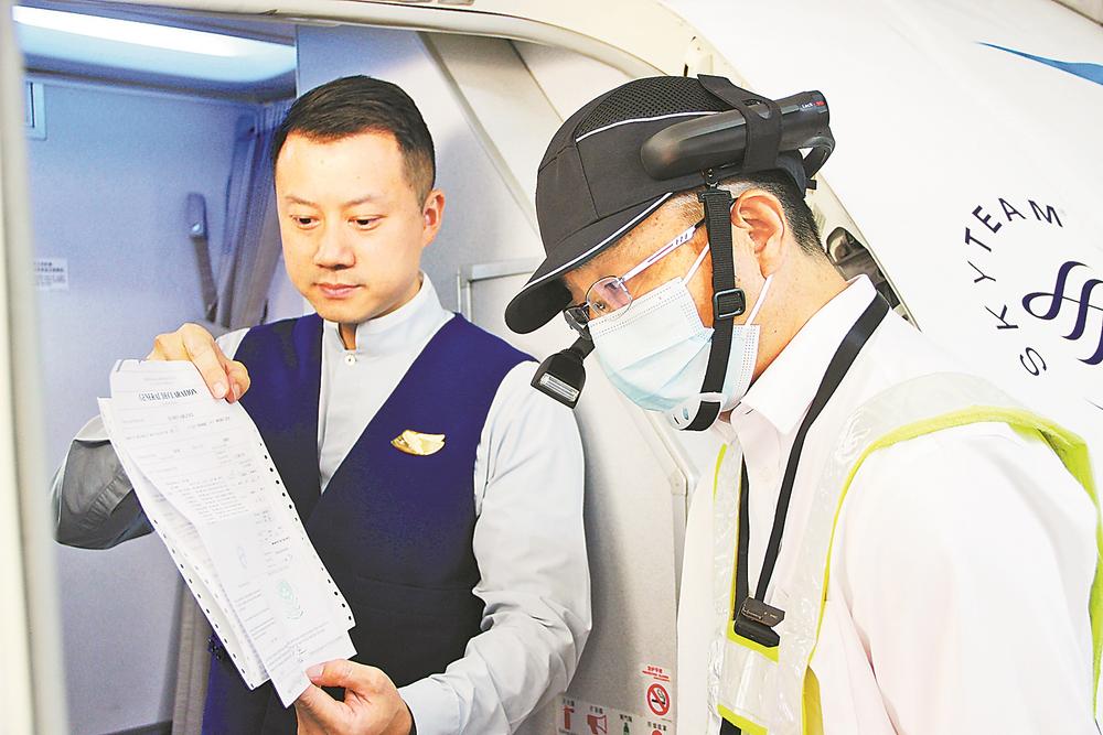 12月8日,厦门机场海关通过航空器智慧电讯检疫模式,指导航司作业人员对进境航班开展远程检疫。罗俊毅 摄