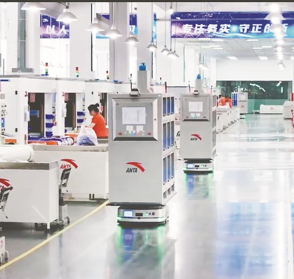 泉州装备所陈豪团队项目突破5G+智能物流关键技术,形成核心技术成果矩阵,且已向多行业推广。图为智能搬运机器人——穿梭于安踏智能工厂的5G AGV。(受访者供图)