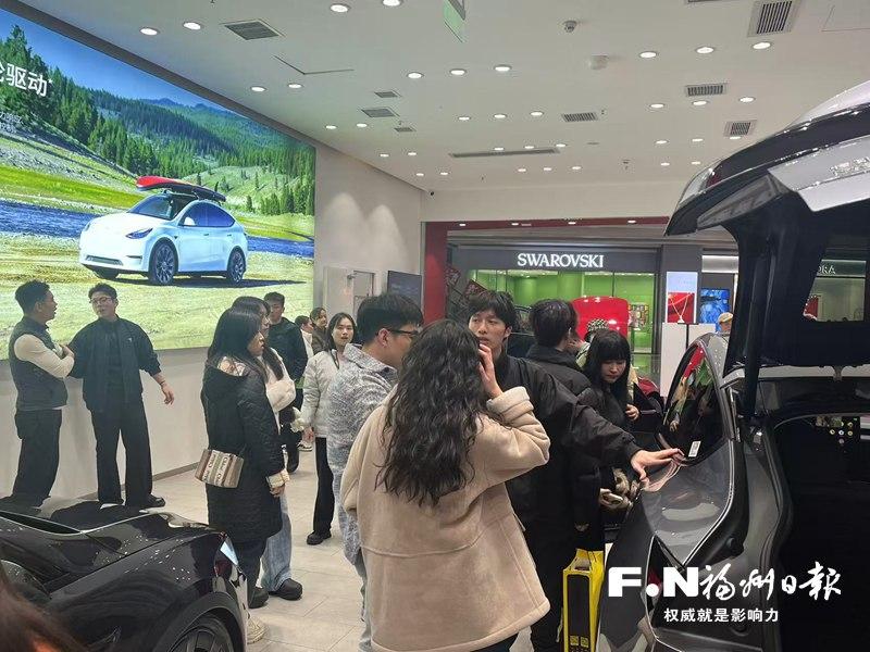 这股升级换代热潮也席卷车市。元旦假期,位于仓山区的特斯拉万达体验店内迎来不少家庭客户,节日购车氛围浓厚。