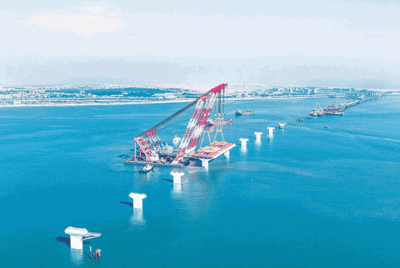 厦金大桥海上首榀钢箱梁吊装成功