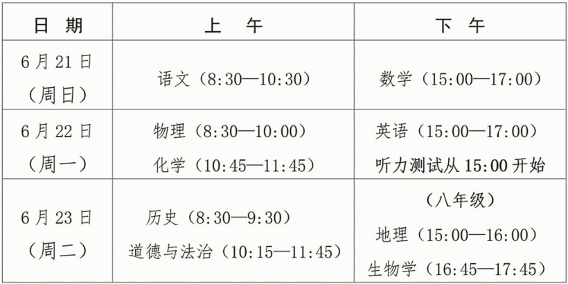 2026年福建中考时间公布