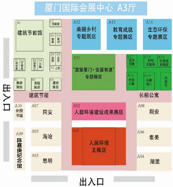 展会由人居环境主展区、厦门城市人居环境建设成果展区、重点特色专题展区、六区人居建设成果展区、建筑节能馆等五大展区组成。