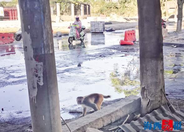 同安朝洋路出现的小猴子。