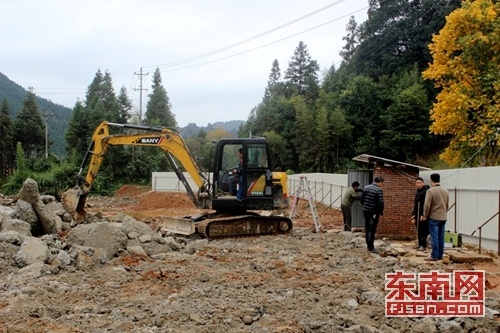 12月10日,在顺昌县岚下乡综合运输服务站建设项目施工现场,工人们冒着微雨,不畏寒冷,正紧张有序地施工中。