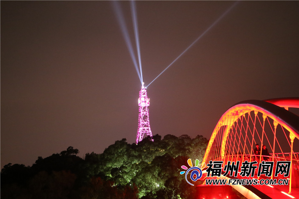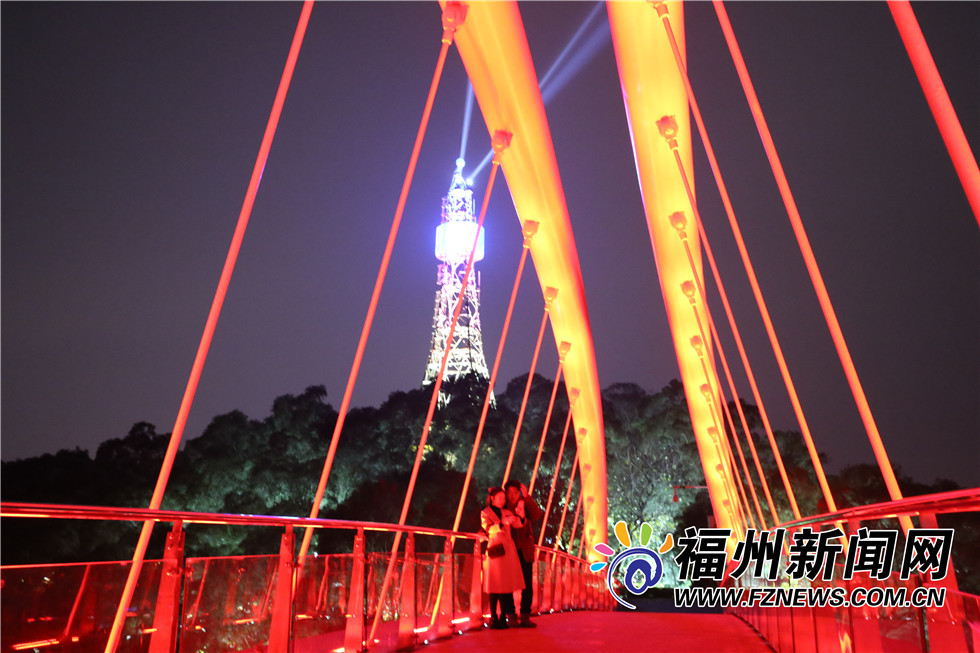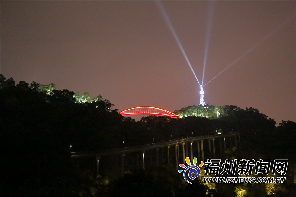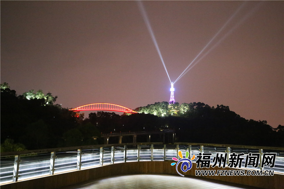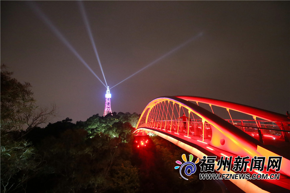 红色灯光照射的飞虹桥横跨山间,炫彩的金鸡塔变换着颜色,近日,福州金鸡山公园夜景再升级,金鸡塔的塔尖直射出了三盏白色灯光,这座原本废弃的通信塔,经过改造修缮,成了市民朋友夜景“打卡”的又一好去处!