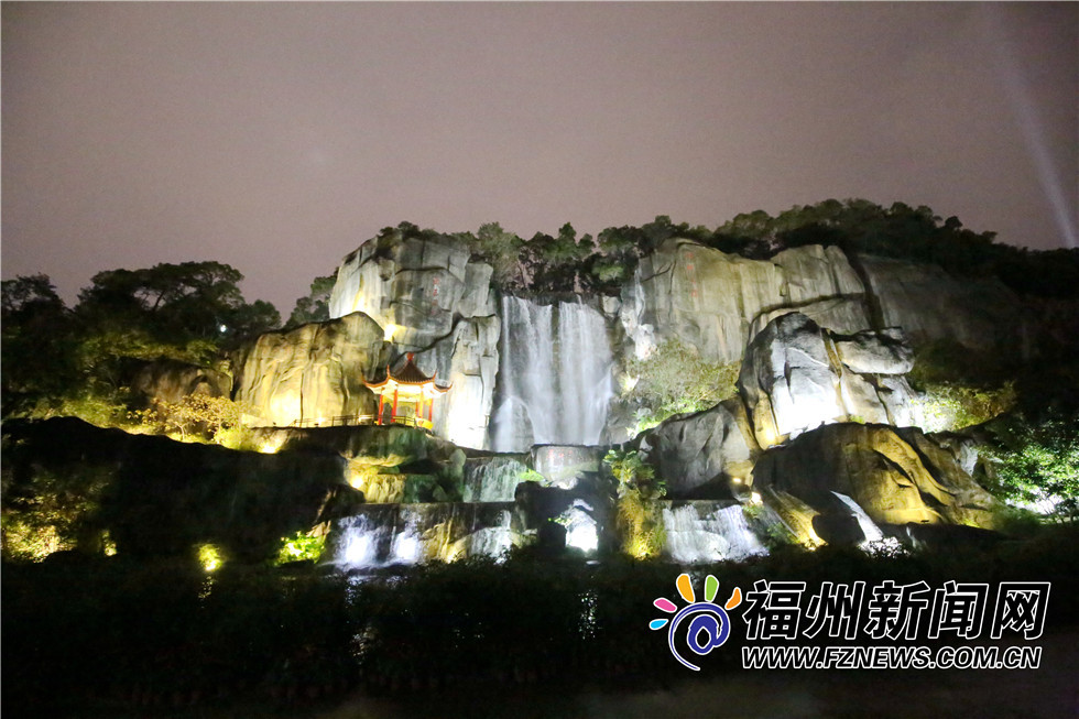 冬夜里,福州金鸡山公园在灯光装扮之下,绽放出另一种美。