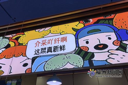 海峡网2月3日讯 (福州新闻网记者 包书平 文/图)超萌卡通形象搭配上“虎纠话”买菜常用语,让这个整洁明亮的菜市场格调爆棚,这就是晋安区琯尾街东门农贸市场。日前,经过几位“90后”“00后”的精心打造,不起眼的农贸市场瞬间成为“网红”。逛菜市场都觉得增添趣味了,买个菜还能现学几句福州话和商家来个讨价还价。网友称:这可能是福州最“潮”的菜市场!