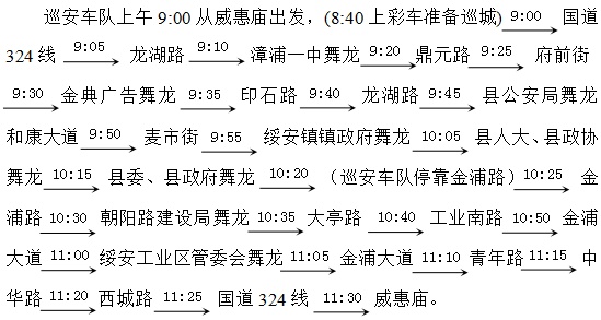 一、圣王巡安车队途经路段,道路两侧禁止停放车辆,路经车辆绕道而行,避免交通拥堵。
