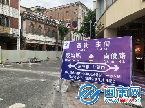 今天下午3时许,福建日报新媒体·闽南网(www.mnw.cn)记者在现场看到,施工队已经进驻,位于钟楼和打锡街的两个路口已经封闭,工人们正在安装围挡。