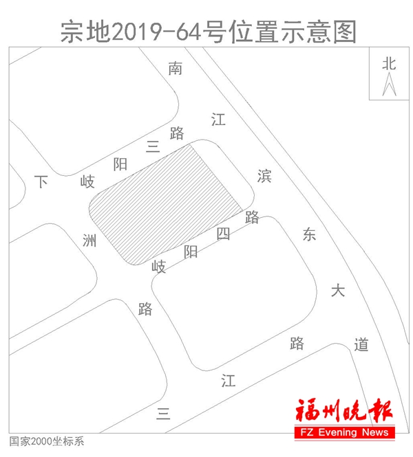 宗地2019-64号是仓山区下洲路东侧的三江口片区出让地块十四,面积20474平方米,其中商业建筑面积不超过20000平方米,建筑高度200米以下(含200米),起始价2.15亿元。该宗地由竞得人100%自持作为总部运营,不得分割转让、出售;不得建设单元式办公,带独立卫生间的商务办公单元套内建筑面积不得少于300平方米。