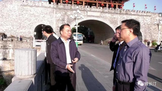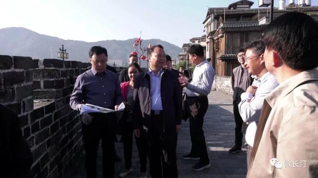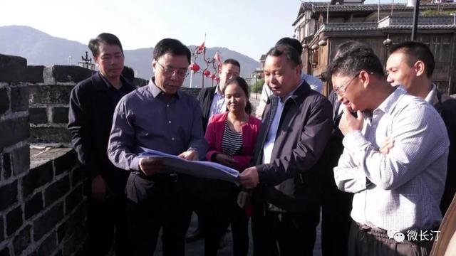 龙岩长汀县领导调研五通桥廊桥景观设计建造工作