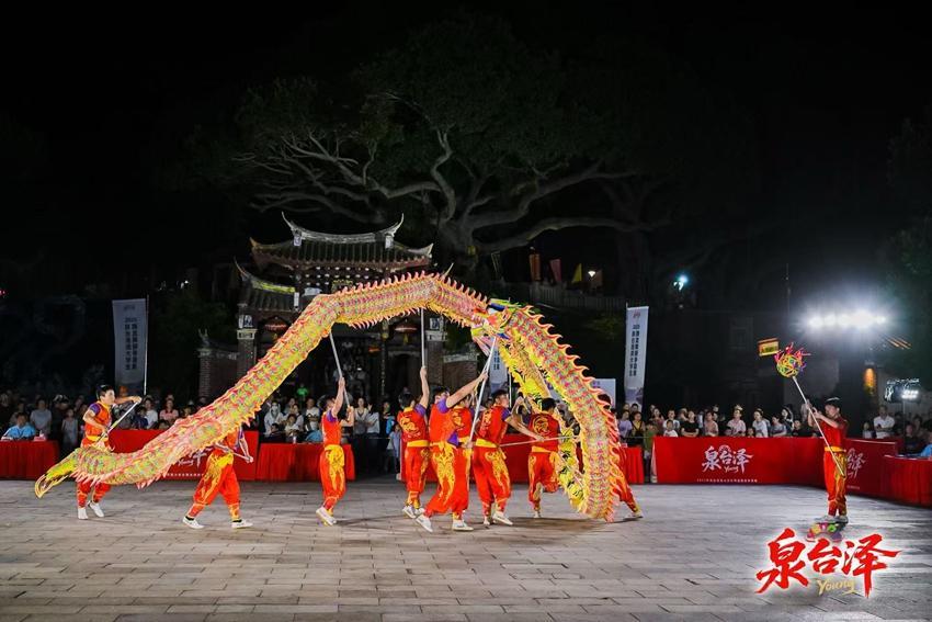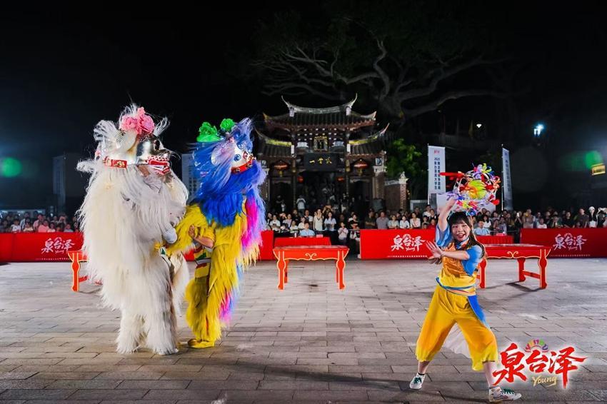 “一点天庭,福星高照,国泰民安;二点眼睛,眼观六路,万里鹏程……”随着点睛仪式举行,锣鼓声响,龙狮齐舞,“泉台泽Young”2025年泉台港澳大学生舞龙舞狮争霸赛在泉州真武庙广场正式拉开帷幕。8月20日晚,来自泉州及台港澳地区的11个团队、14支代表队齐聚丰泽,以龙狮会友,上演一场跨越地域、共叙同源的文化比武。
