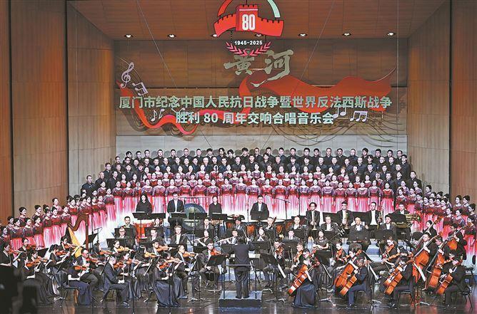 黄河咆哮,声震寰宇;时代回响,致敬英魂。昨晚,“黄河——厦门市纪念中国人民抗日战争暨世界反法西斯战争胜利80周年交响合唱音乐会”在闽南大戏院震撼上演。市四套班子有关领导、各界代表及市民群众等约800名观众共同观看了演出。