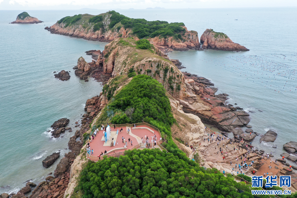 霞浦县“东海一号”风景观光道下尾岛景点风光秀美,吸引大批游客前来打卡游览(9月20日摄,无人机照片)。新华网 肖和勇 摄