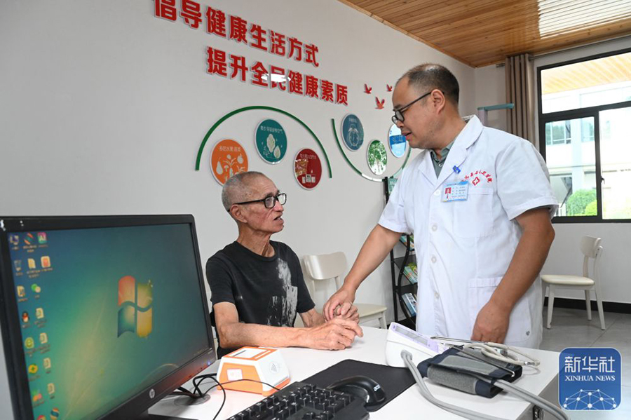 9月24日,政和县石屯镇卫生院医生在“幸福里”社区的健康小屋为老人诊疗。新华社记者 林善传 摄