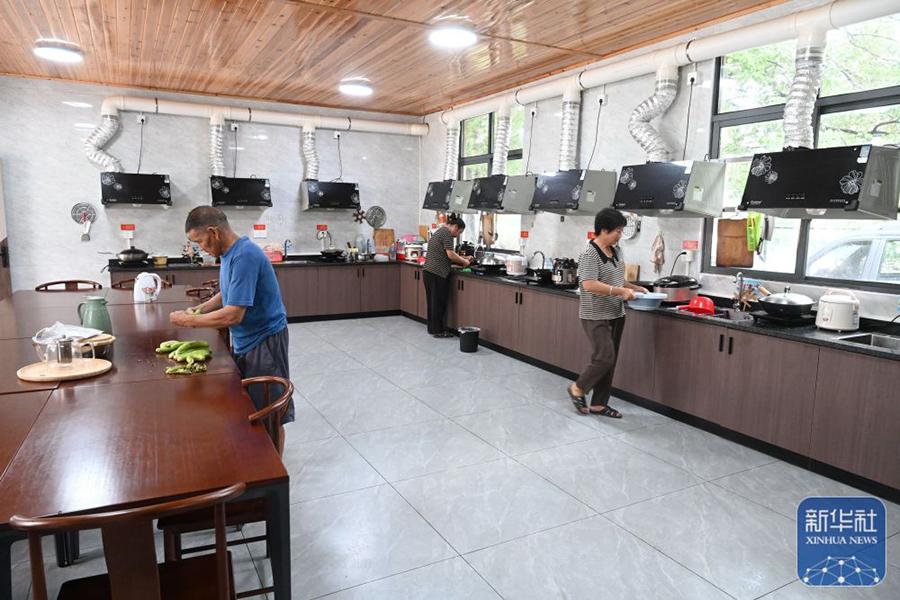 9月24日,政和县石屯镇“幸福里”社区的老人们在共享厨房准备做饭。新华社记者 林善传 摄