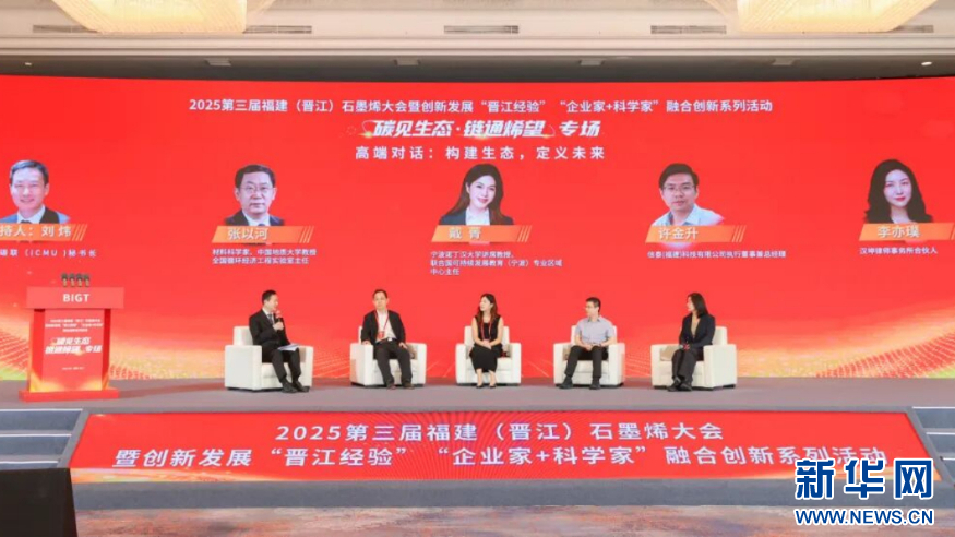 9月25日,第三届福建(晋江)石墨烯大会暨创新发展“晋江经验”“企业家+科学家”融合创新系列活动——“碳见生态·链通烯望”专场大会在泉州晋江举行。