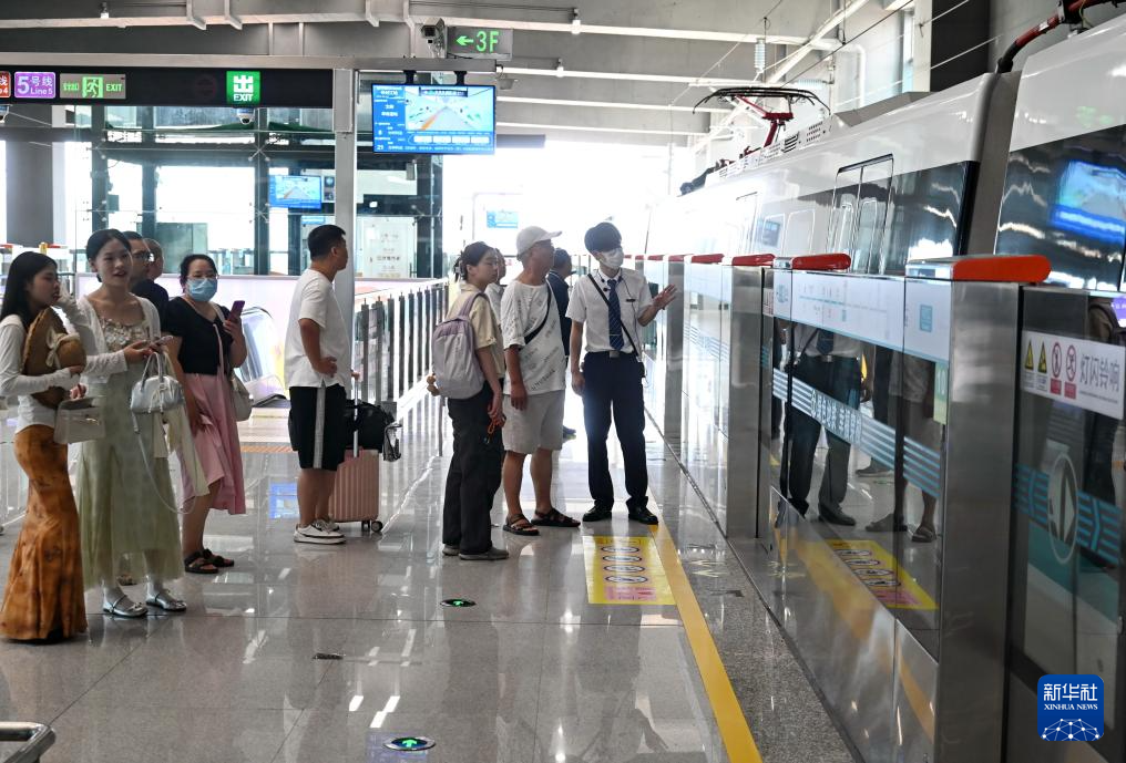 9月29日,人们在滨海快线帝封江站等候前往福州长乐国际机场的列车。新华社记者 林善传 摄