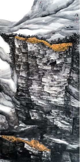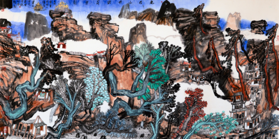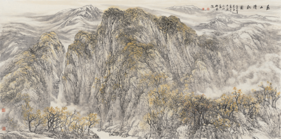 姚鸣京作品《老君山秋云高照图》。新华网发(主办方供图)