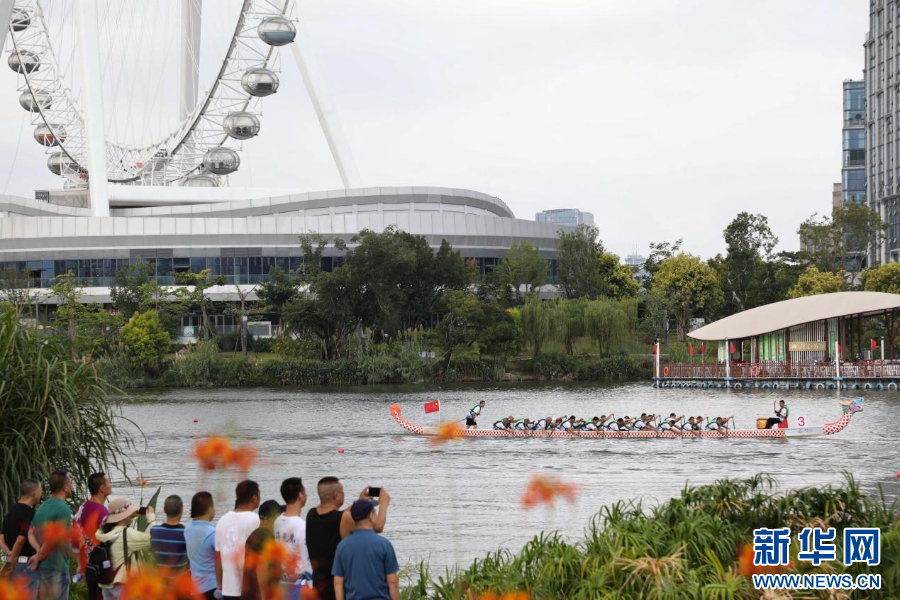 晋安湖龙舟竞速。新华网发(福州市水务文化旅游有限公司供图)