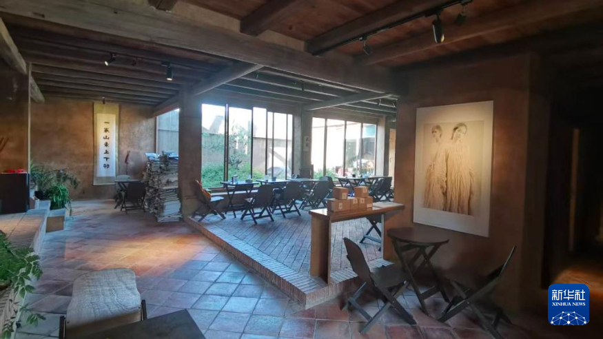 图为培田古村内旧粮仓改造的培田倦山美术馆一角。 新华社记者秦宏 摄