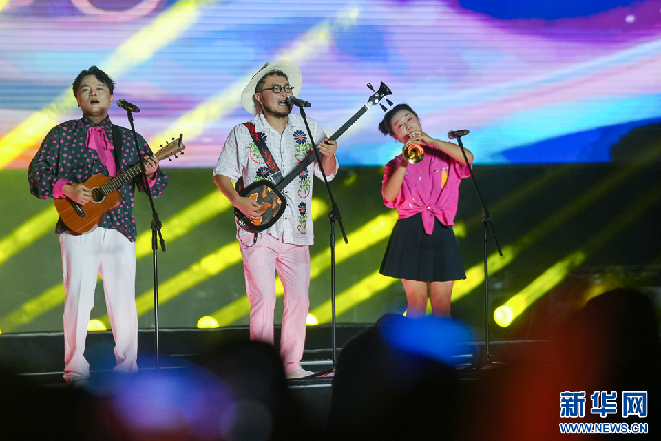 10月5日晚,台湾歌手叶佳修演唱歌曲《外婆的澎湖湾》。新华网 肖和勇 摄