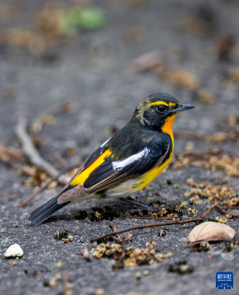 在福州乌山风景区,一只黄眉姬鹟在觅食(4月17日摄)。