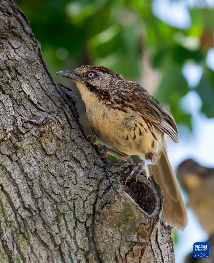 在厦门集美区的龙舟池畔,一只矛纹草鹛在树枝上觅食(9月9日摄)。新华社记者 魏培全 摄