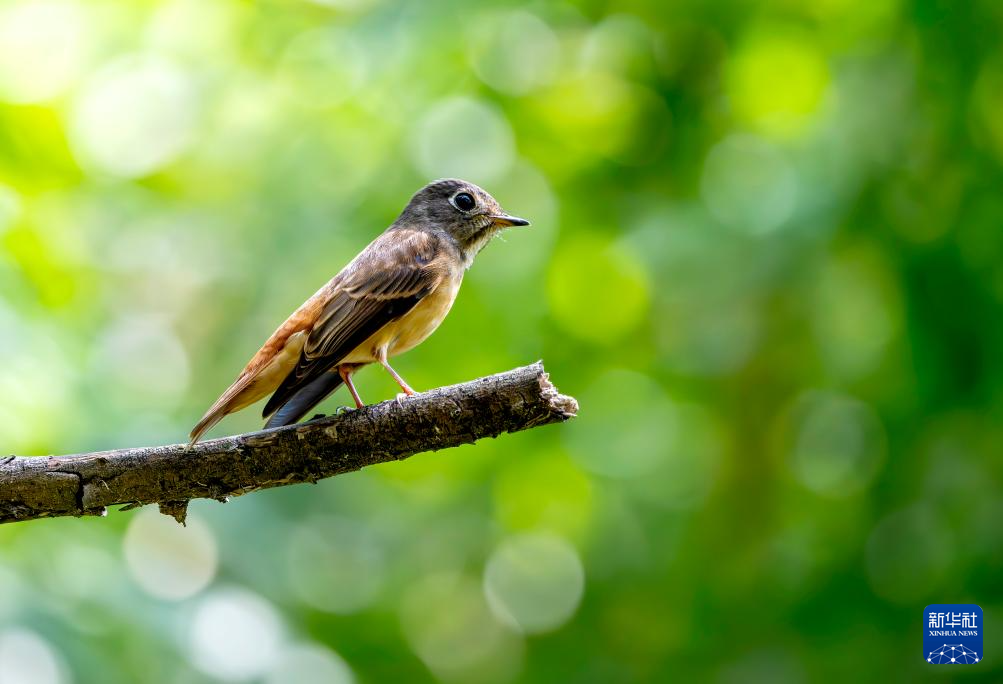 在福州金牛山公园,一只棕尾褐鹟在枝头上停歇(4月22日摄)。新华社记者 魏培全 摄