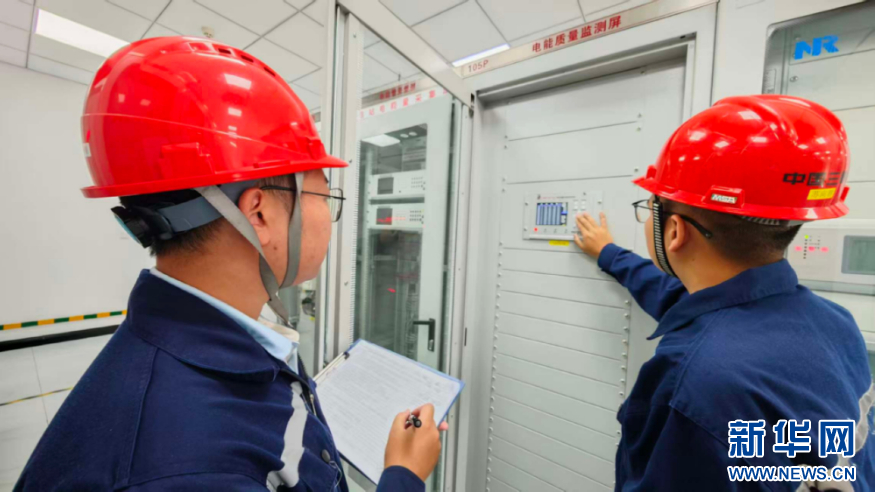 这是工作人员对项目配套的电能监测设备进行日常巡检。新华网 刘默涵 摄