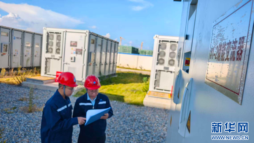 这是工作人员对项目配套的储能设备进行日常巡检。新华网 刘默涵 摄
