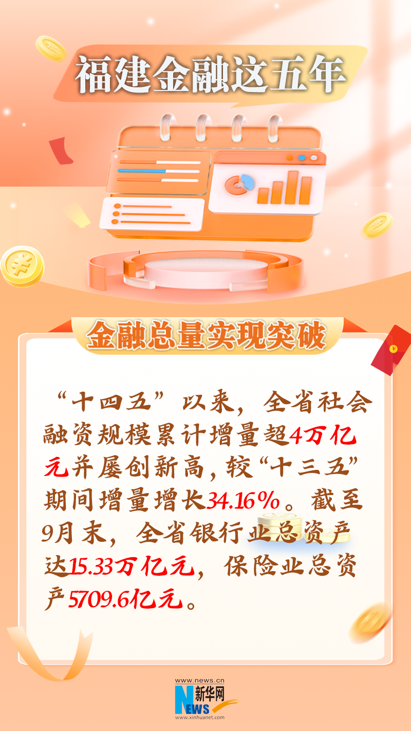 新华网福州10月31日电(蒋巧玲 连雨欣)银行业总资产超15万亿元、支农支小再贷款再贴现总量位居全国前列、12项改革创新成果在全国推广……“十四五”期间,福建金融事业高质量发展,在总量资源、融资服务、改革创新、风险防控等方面实现了多元突破。30日,福建省政府新闻办召开“高质量完成‘十四五’规划,在中国式现代化建设中奋勇争先”系列主题新闻发布会(第十三场),介绍并发布相关情况。