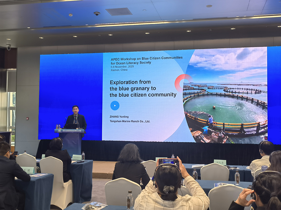在8日举办的以“蓝色市民社区指标体系与伙伴关系”为主题的交流研讨会上,作为会议唯一一家企业代表、来自中国的企业——唐山海洋牧场实业有限公司分享了唐山从蓝色粮仓到蓝色市民社区的探索。