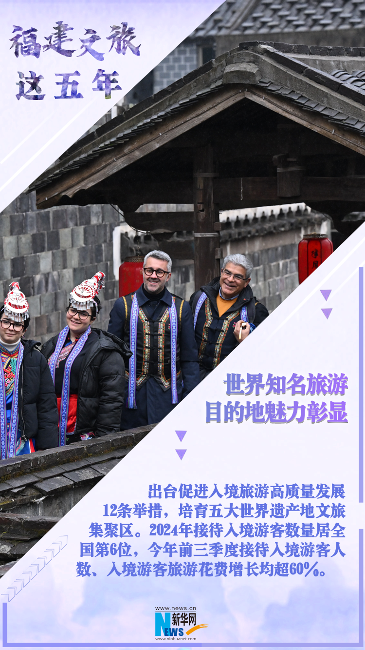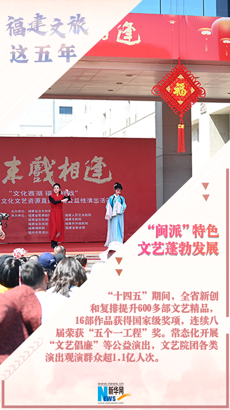 新华网福州11月12日电(蒋巧玲 连雨欣)“十四五”期间,福建省旅游总人数、游客总花费实现年均两位数以上的快速增长,文旅经济增加值占GDP的比重提升至10%以上。11日,福建省政府新闻办召开“高质量完成‘十四五’规划,在中国式现代化建设中奋勇争先”系列主题新闻发布会(第十五场),介绍并发布福建文旅经济动能释放的五年成果。