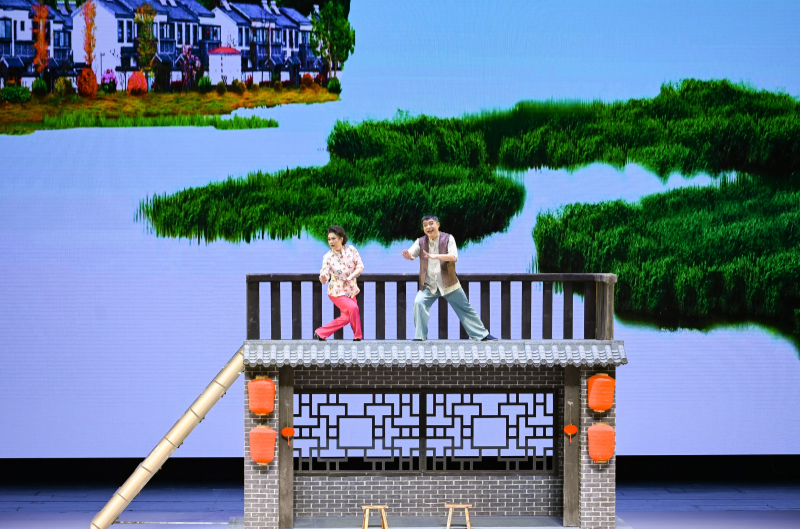 演出现场上演的淮剧小戏《憨村长爬墙头》。新华网发(主办方供图)