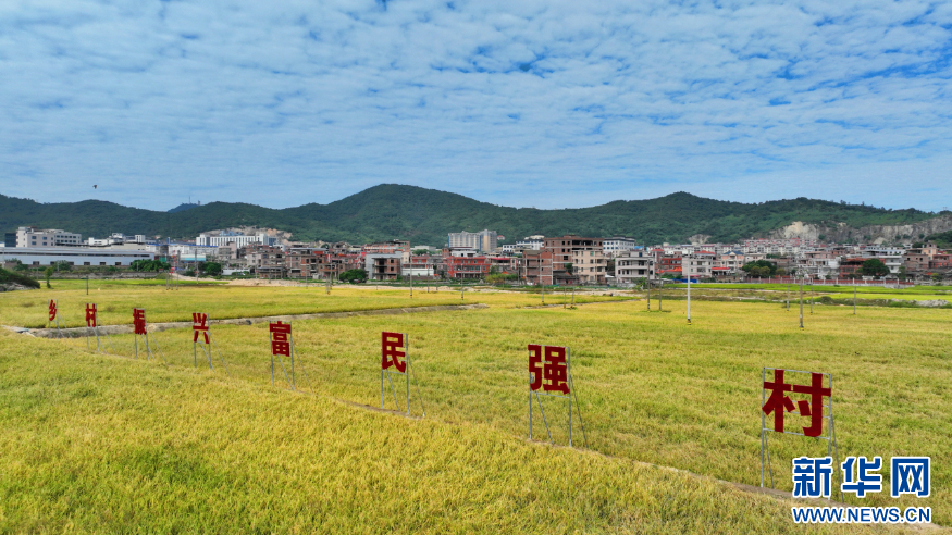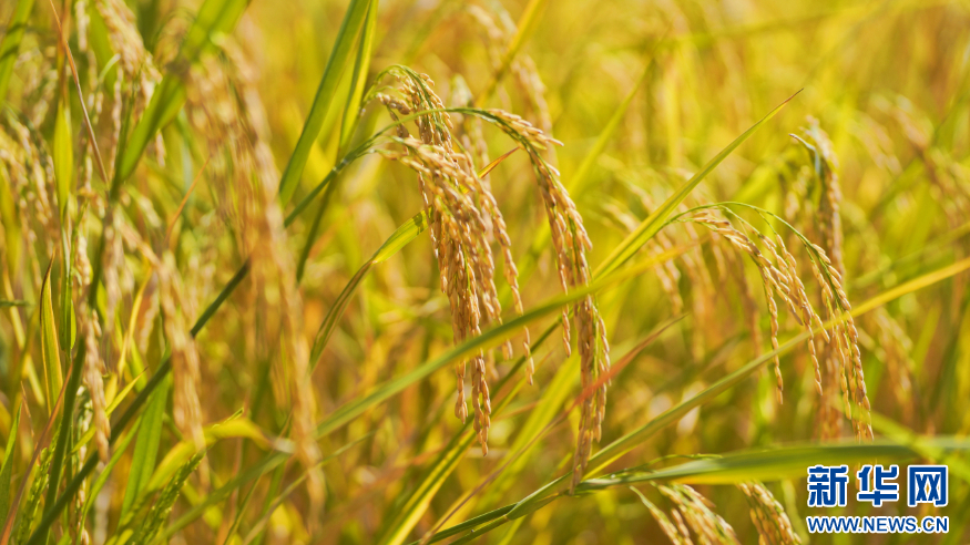 水稻谷穗金黄饱满,伴着微风轻轻摇曳。新华网发(林楷煜 摄)