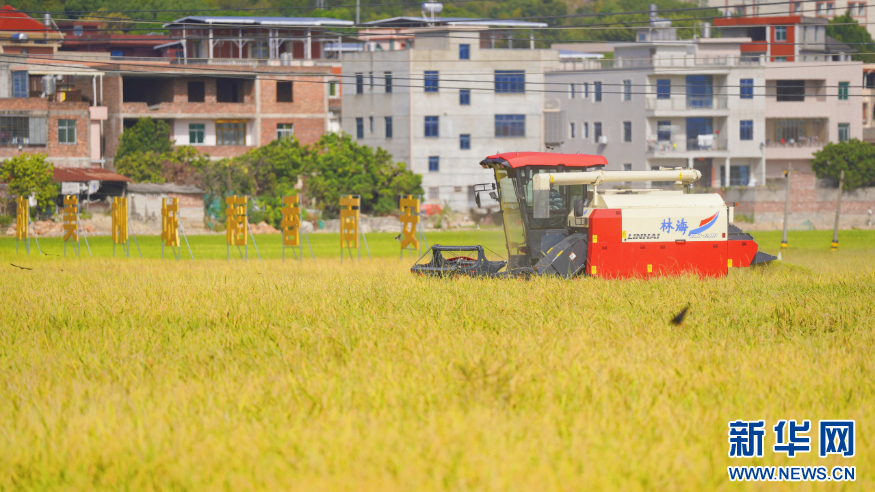 新华网福州11月16日电(刘默涵)当前正是晚稻成熟季,位于福建省南安市露江村的农田改造提升与主粮现代化农事运营示范项目稻田迎来收割的黄金时节。伴着徐徐微风,穿梭在稻田里的收割机奏响田间“丰收曲”。
