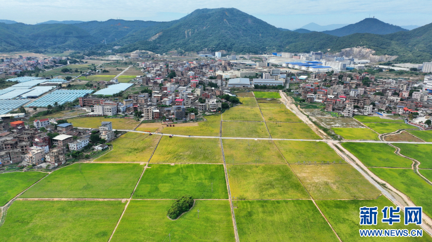 露江村的农田改造提升与主粮现代化农事运营示范项目稻田迎来晚稻丰收季(无人机拍摄)。新华网发(林楷煜 摄)