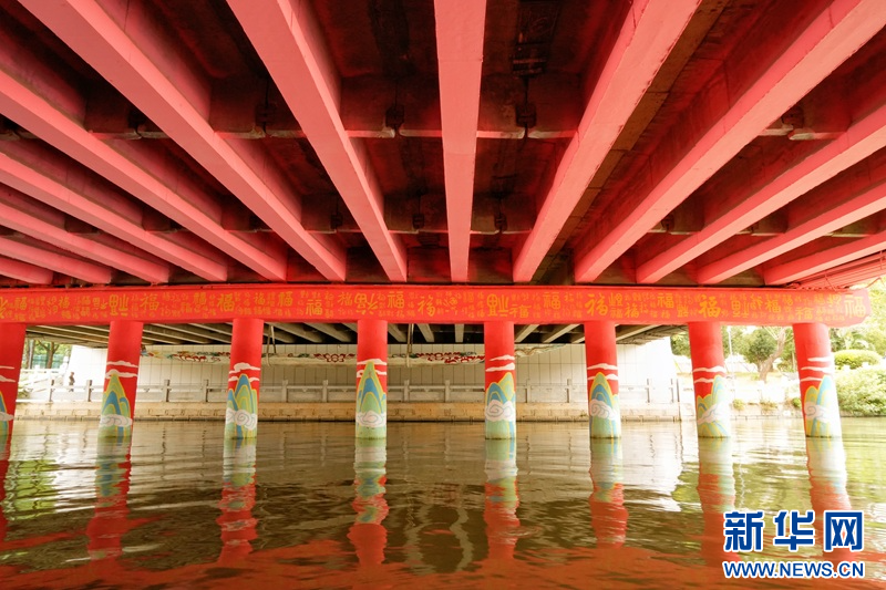 晋安河—光明港航线上的桥梁彩绘“百福图”。新华网发(福州市水务文化旅游有限公司供图)