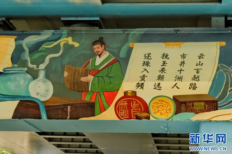 六一斜桥下的彩绘生动呈现“王审知入闽”的开闽史话。新华网发(福州市水务文化旅游有限公司供图)
