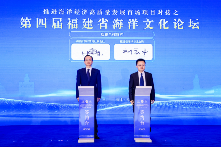 在签约环节,福建省海洋与渔业局同省农信联社签订战略合作协议,与省广播影视集团签订防灾减灾救灾宣传合作框架协议。此外,泉州及其他沿海设区市集中签约14个海洋文旅项目,其中10个项目获得了省农信联社的金融授信。