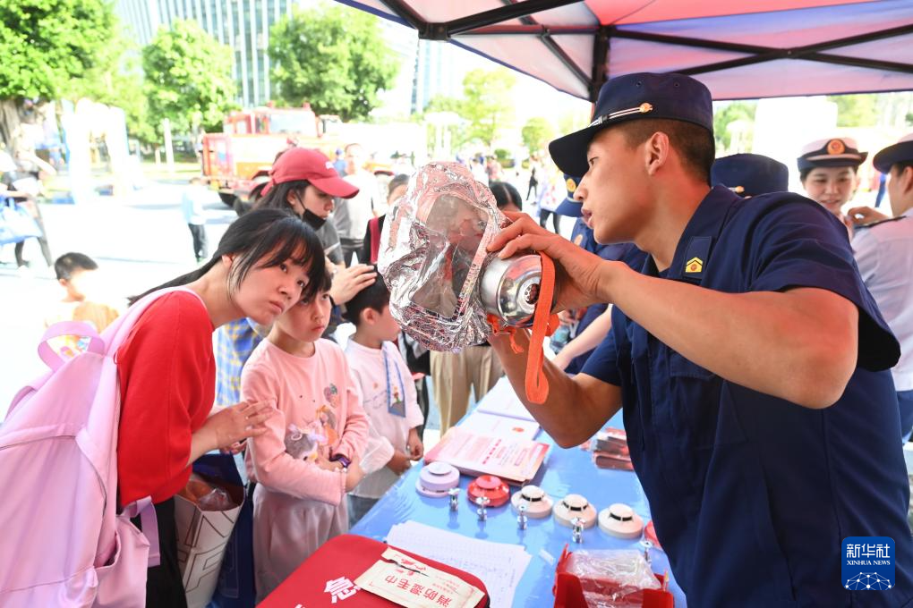 11月8日,消防员向市民介绍救援装备。新华社记者 林善传 摄