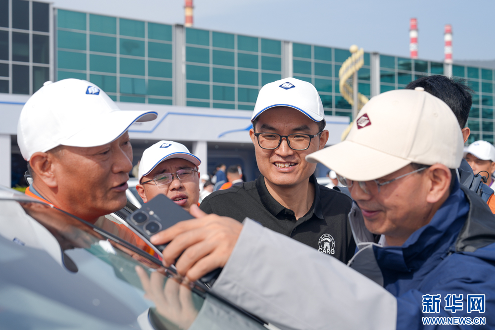 11月28日,汽车玻璃修复技能项目决赛现场,选手和嘉宾赛后交流经验。新华网 肖和勇 摄