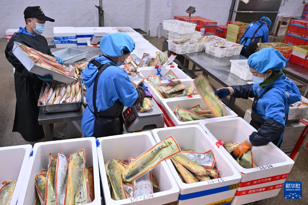 11月28日,福建省宁德市霞浦县一家水产企业在加工大黄鱼产品。新华社记者 姜克红 摄