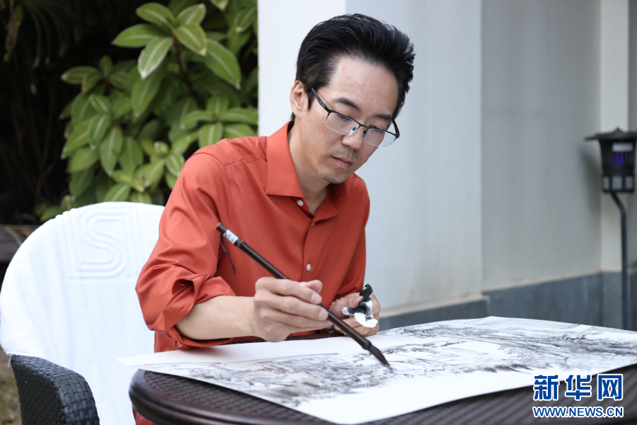 中国美术家协会主席范迪安现场创作。新华网发(主办方供图)