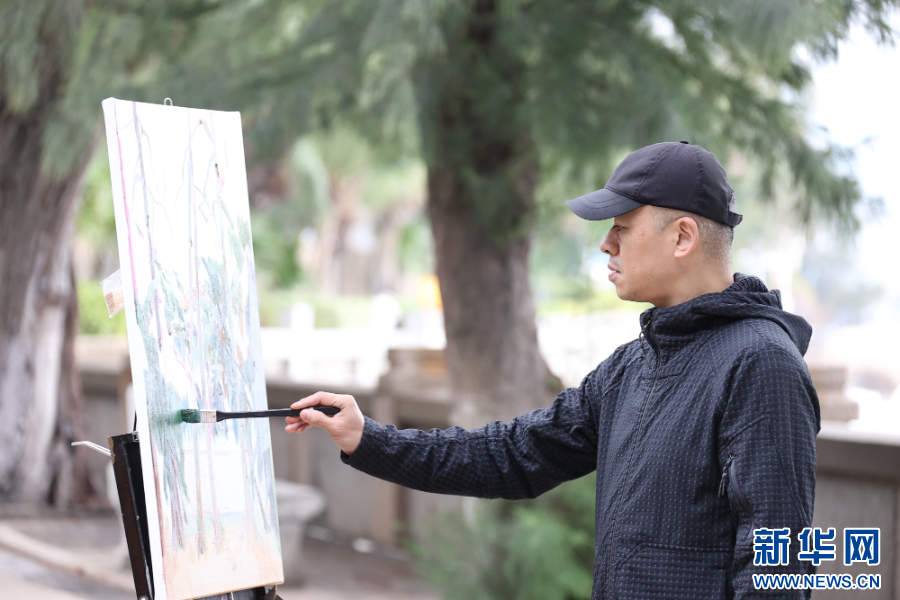 图为“一城春色半城花”——2025年美术名家厦门采风写生交流活动现场。新华网发(主办方供图)