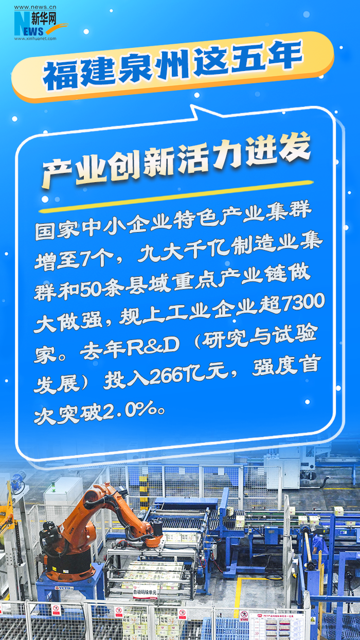 新华网福州12月18日电(蒋巧玲 连雨欣)GDP连跨3个千亿台阶、R&D(研究与试验发展)投入首次突破2.0%、年度游客量突破1亿人次……“十四五”时期,泉州传承弘扬、创新发展“晋江经验”,大拼经济、大抓发展,海丝名城、智造强市、品质泉州建设取得新的重大成就。18日,福建省委宣传部召开“在中国式现代化建设中奋勇争先 奋力谱写新征程新福建建设新篇章”系列主题新闻发布会(第五场),介绍并发布泉州市“十四五”时期经济社会发展总体情况。