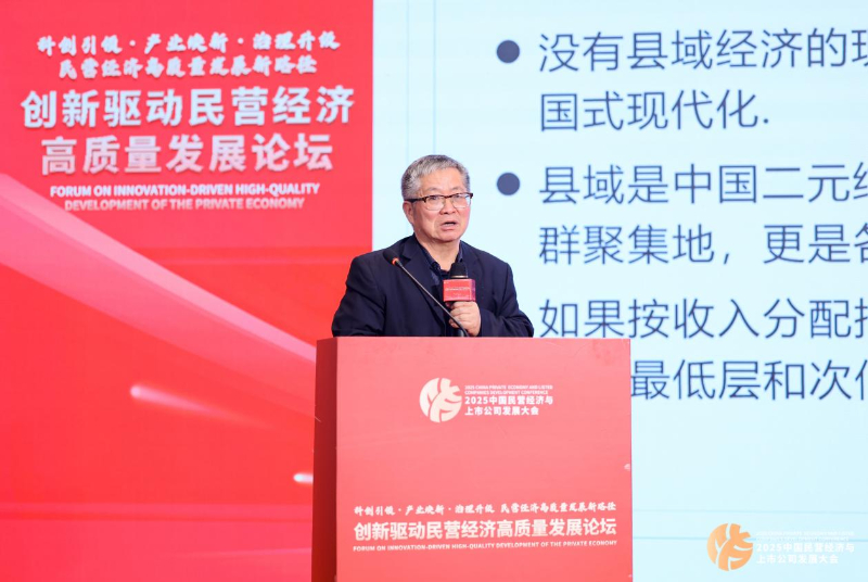 2025中国民营经济与上市公司发展大会分论坛——创新驱动民营经济高质量发展论坛12月24日在福建省晋江市举行。中国县域经济发展大会组委会执行主任、中国经济体制改革研究会前副会长陈剑以《以新质生产力重塑县域产业及晋江县域经济样本观察》为题作主题演讲。