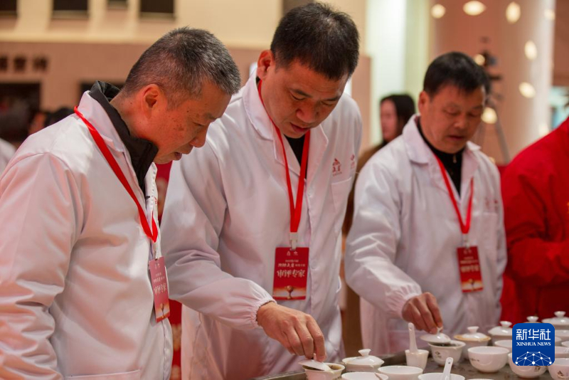 12月26日,评审专家在茶王赛现场评审茶样。新华社发(陈颖 摄)